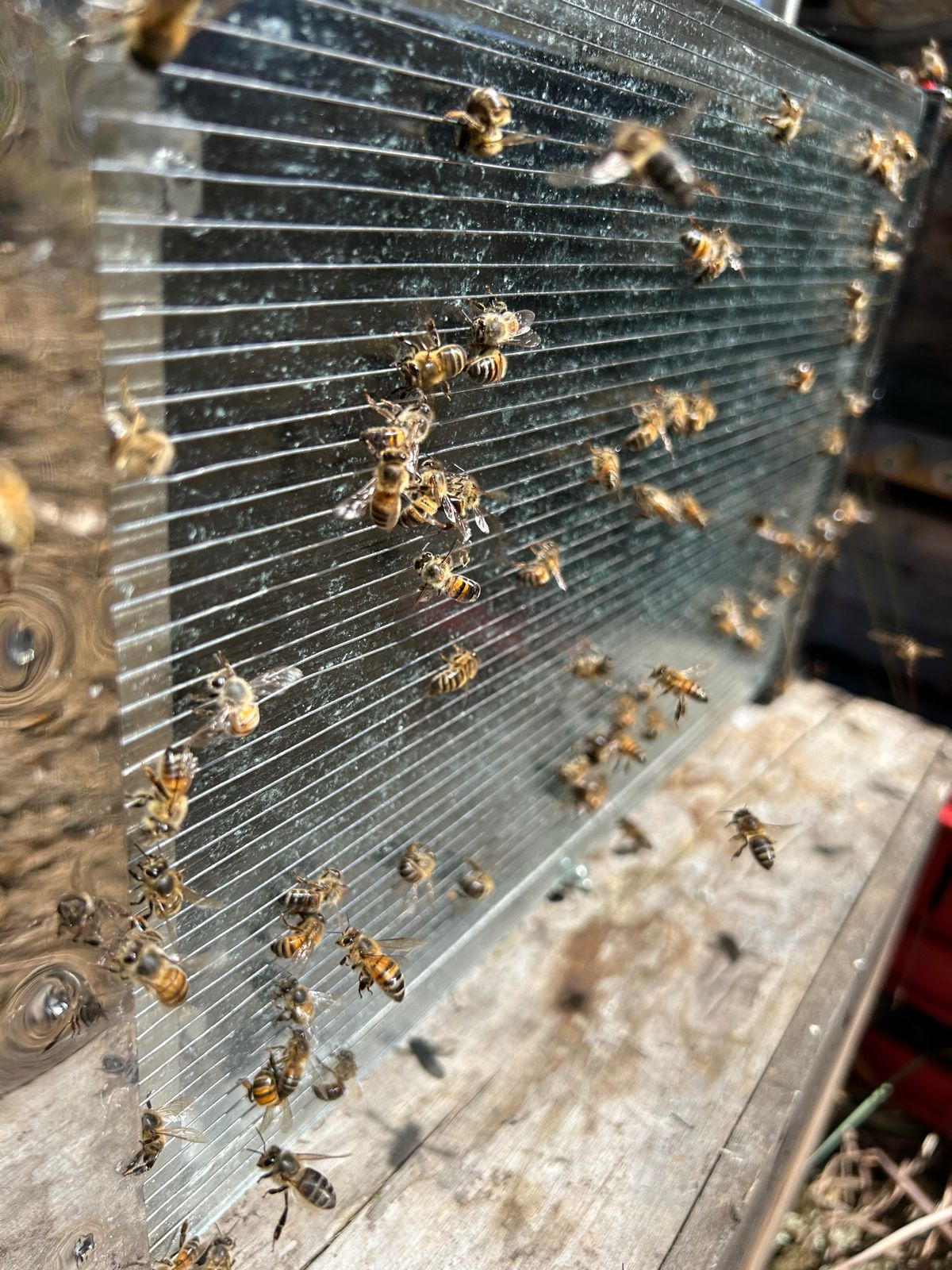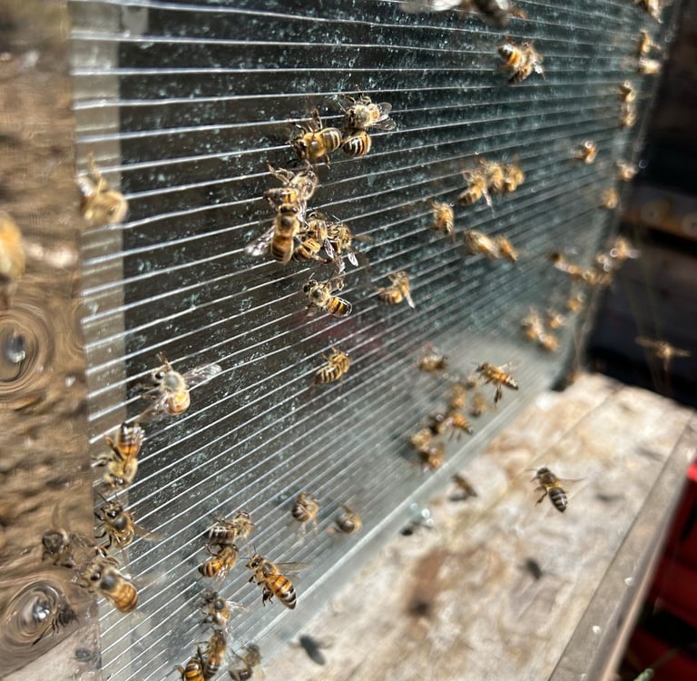 Abejas dejando el veneno en una trampa profesional